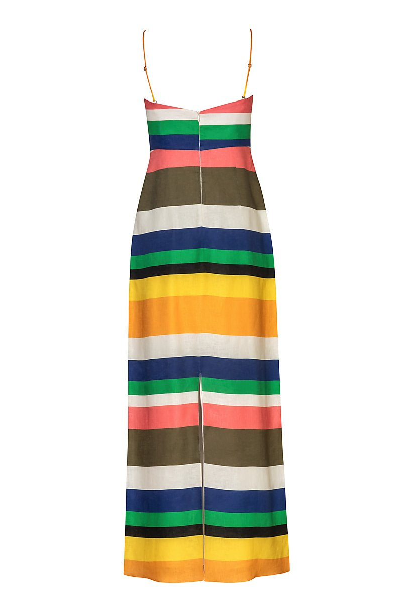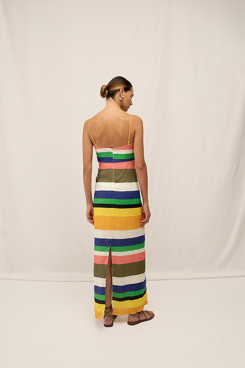 Vestido midi con top entrelazado con abertura en la parte delantera y tirantes ajustables removibles. Totalmente forrado. Hecho de 100% lino.