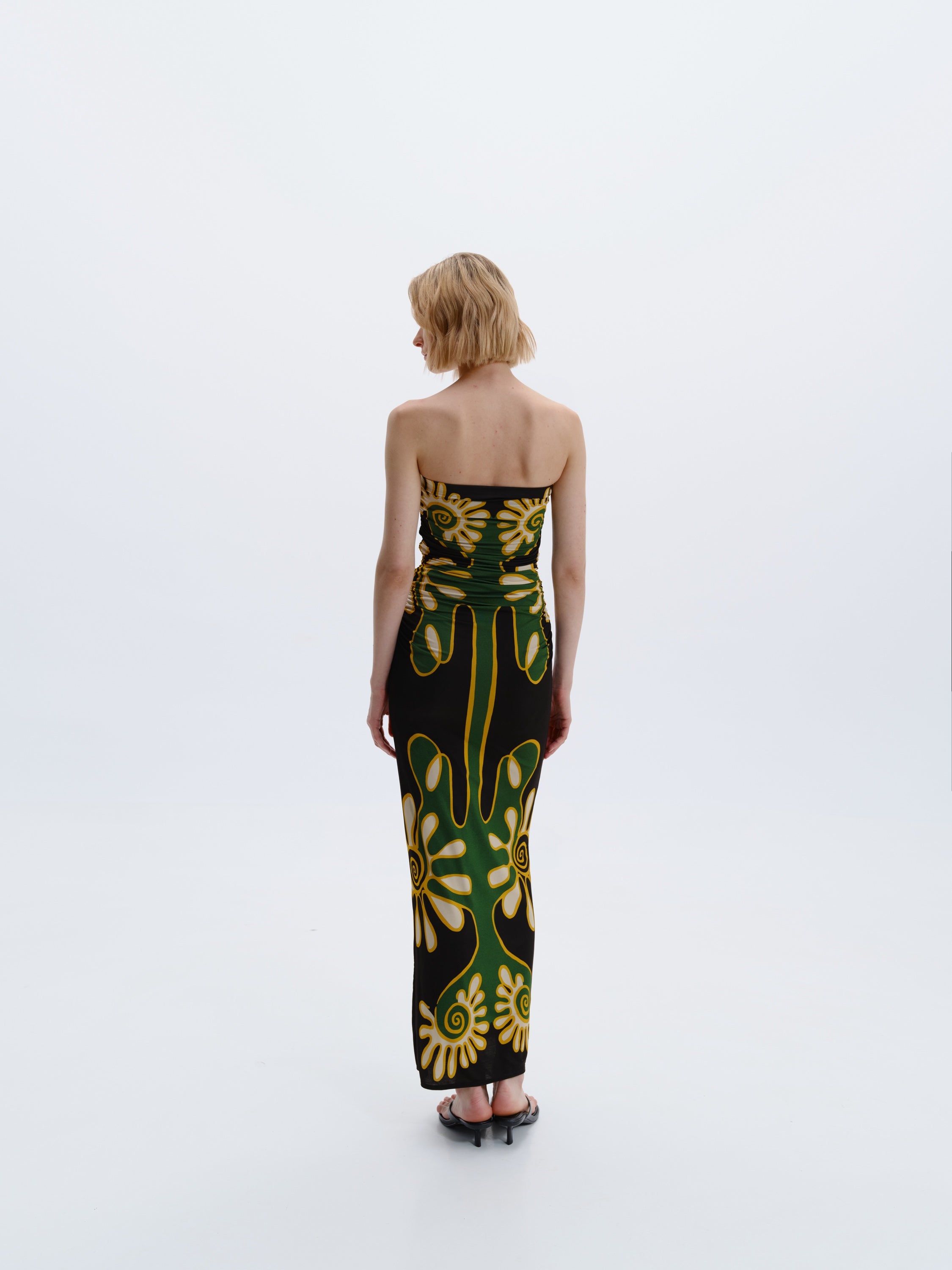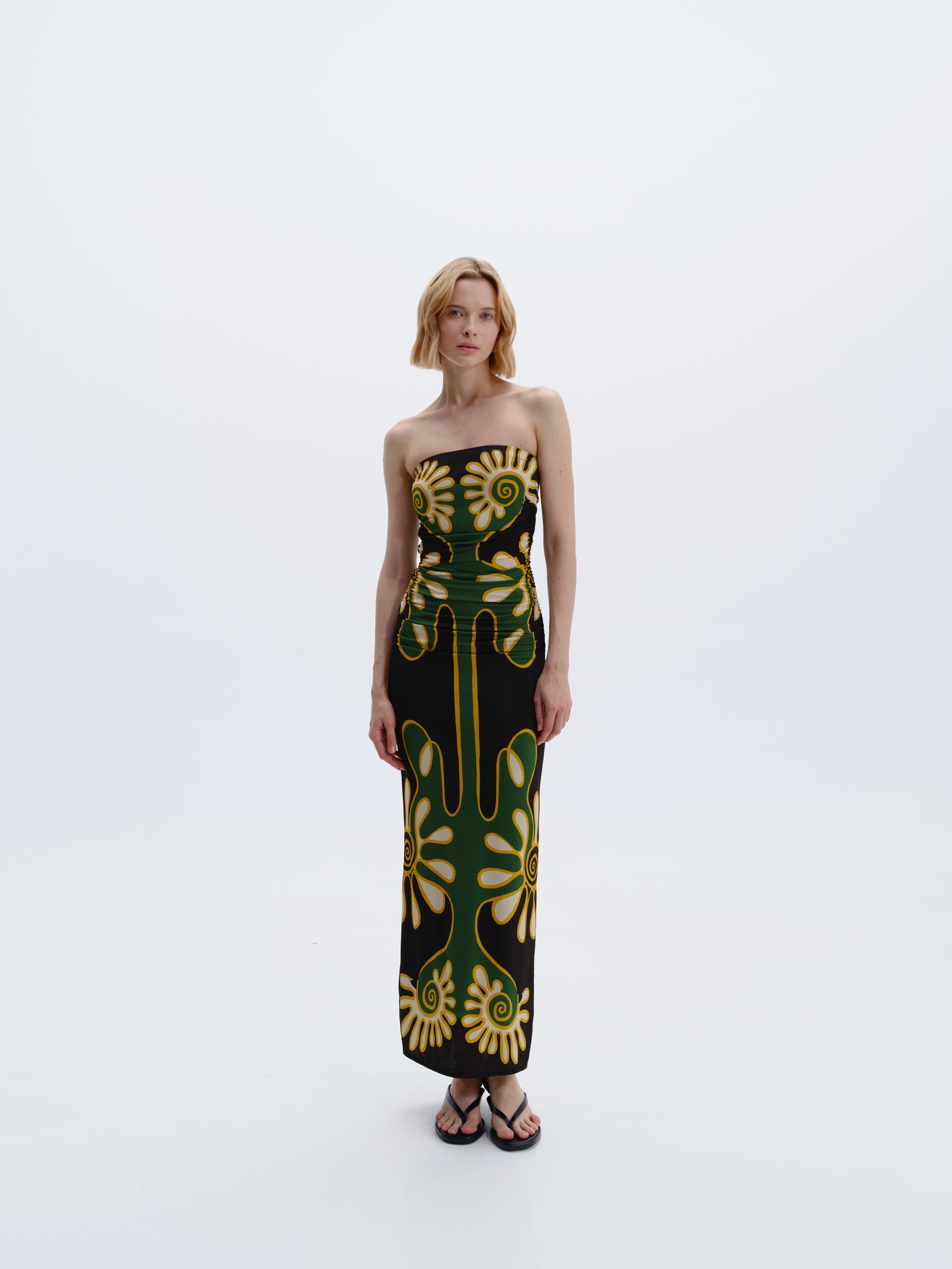 Vestido tubo strapless con recogido en ambos lados. Completamente forrado. Hecho de 90% Viscosa 10% Elastano.