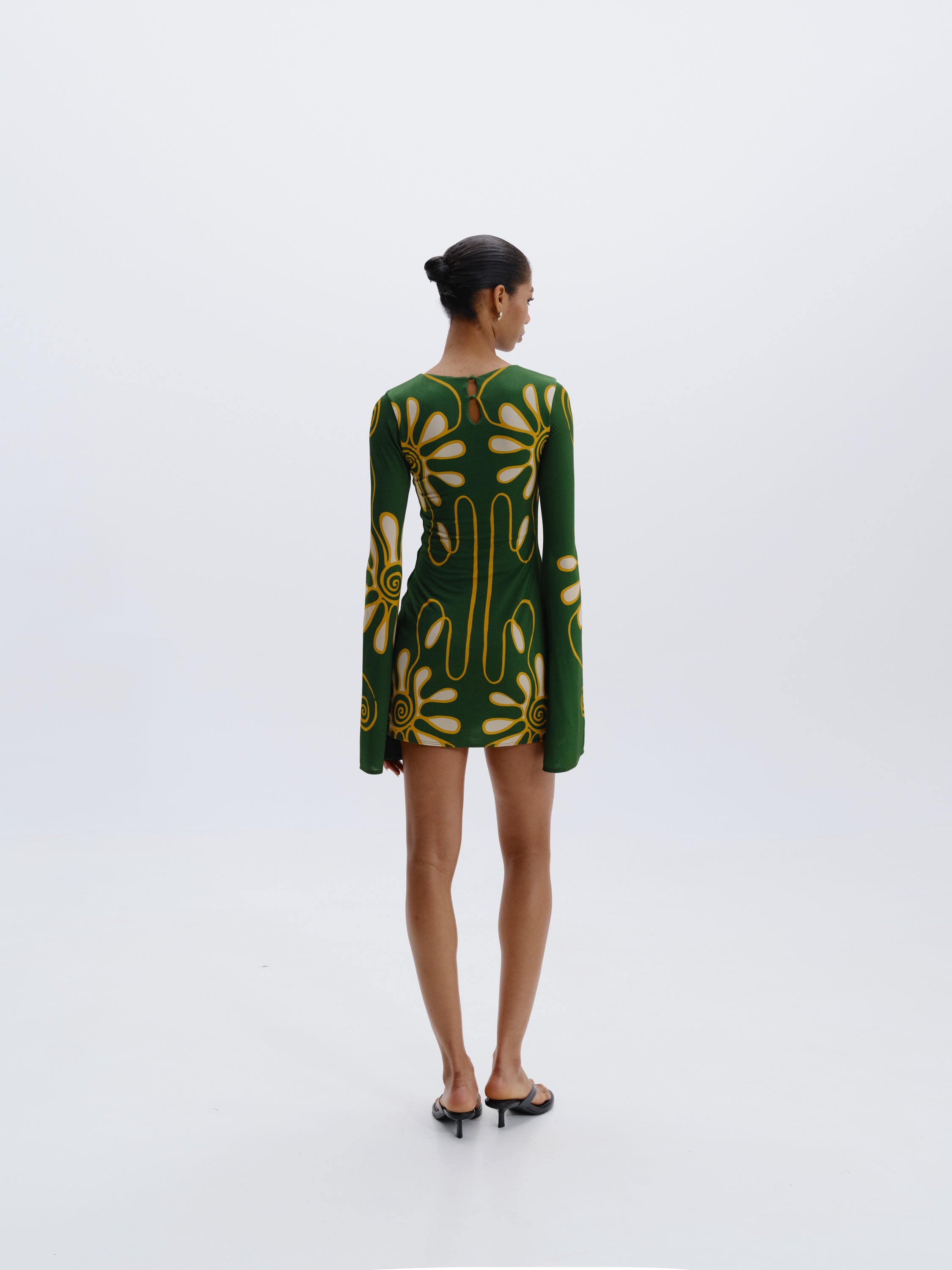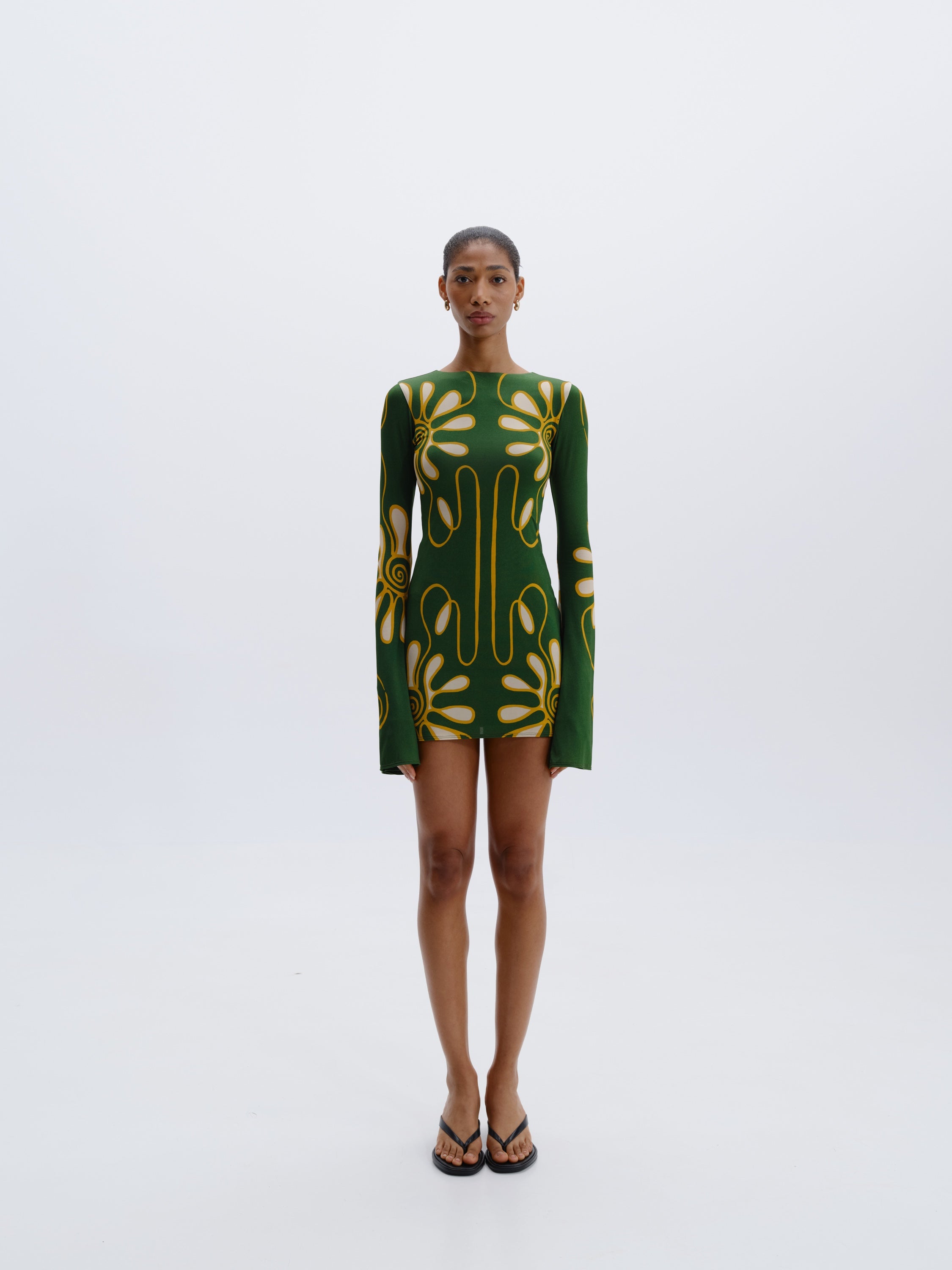 Minivestido entallado con falda acampanada y mangas extralargas. Completamente forrado. Hecho de 90% Viscosa 10% Elastano.