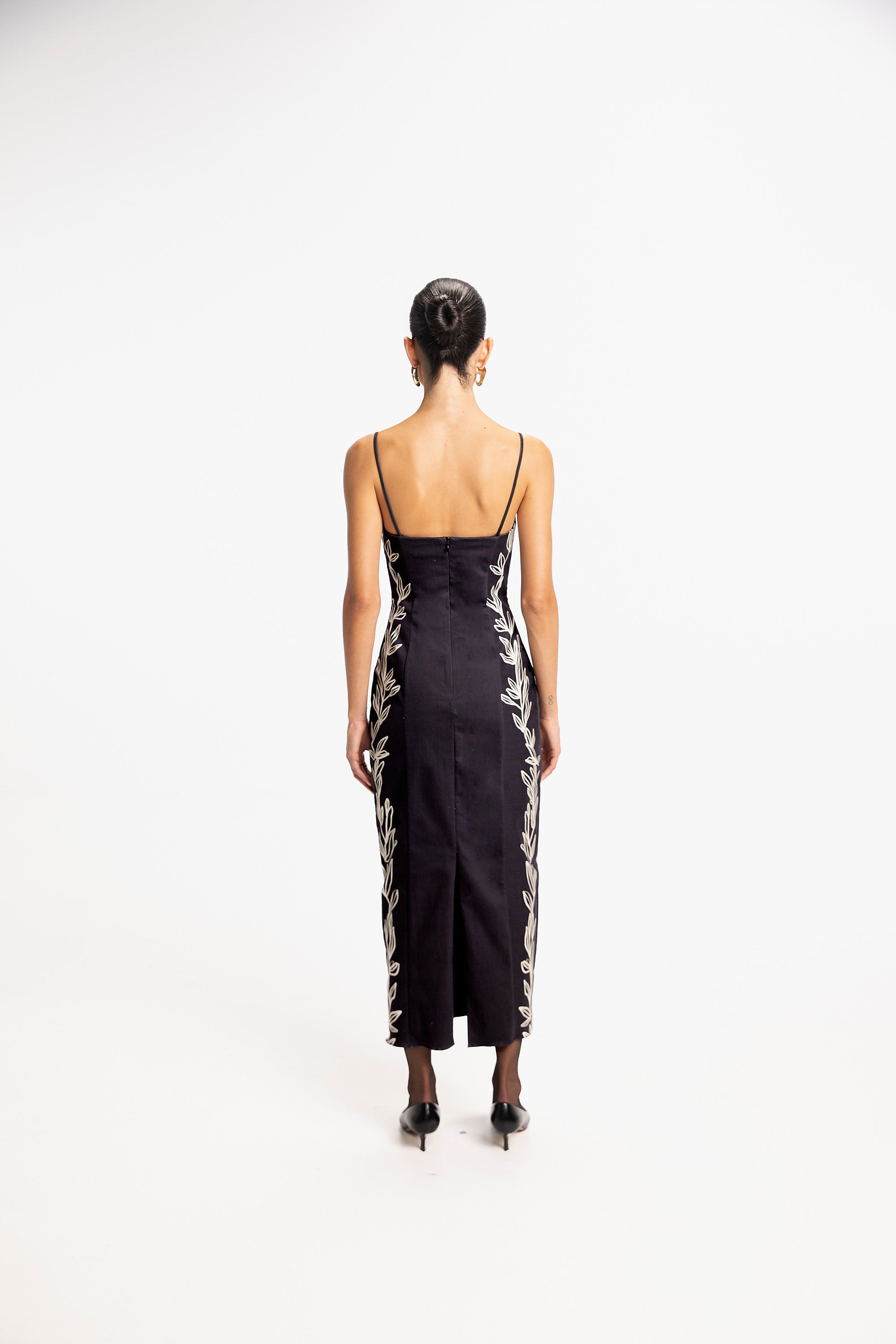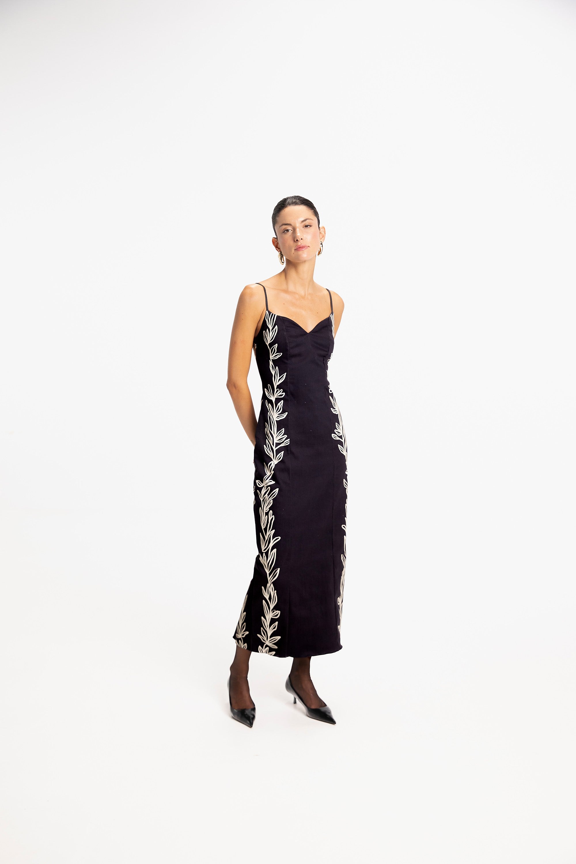 Vestido midi ajustado sin mangas con escote corazón. Hecho de 96.5% Cotton 3.5% Elastane.