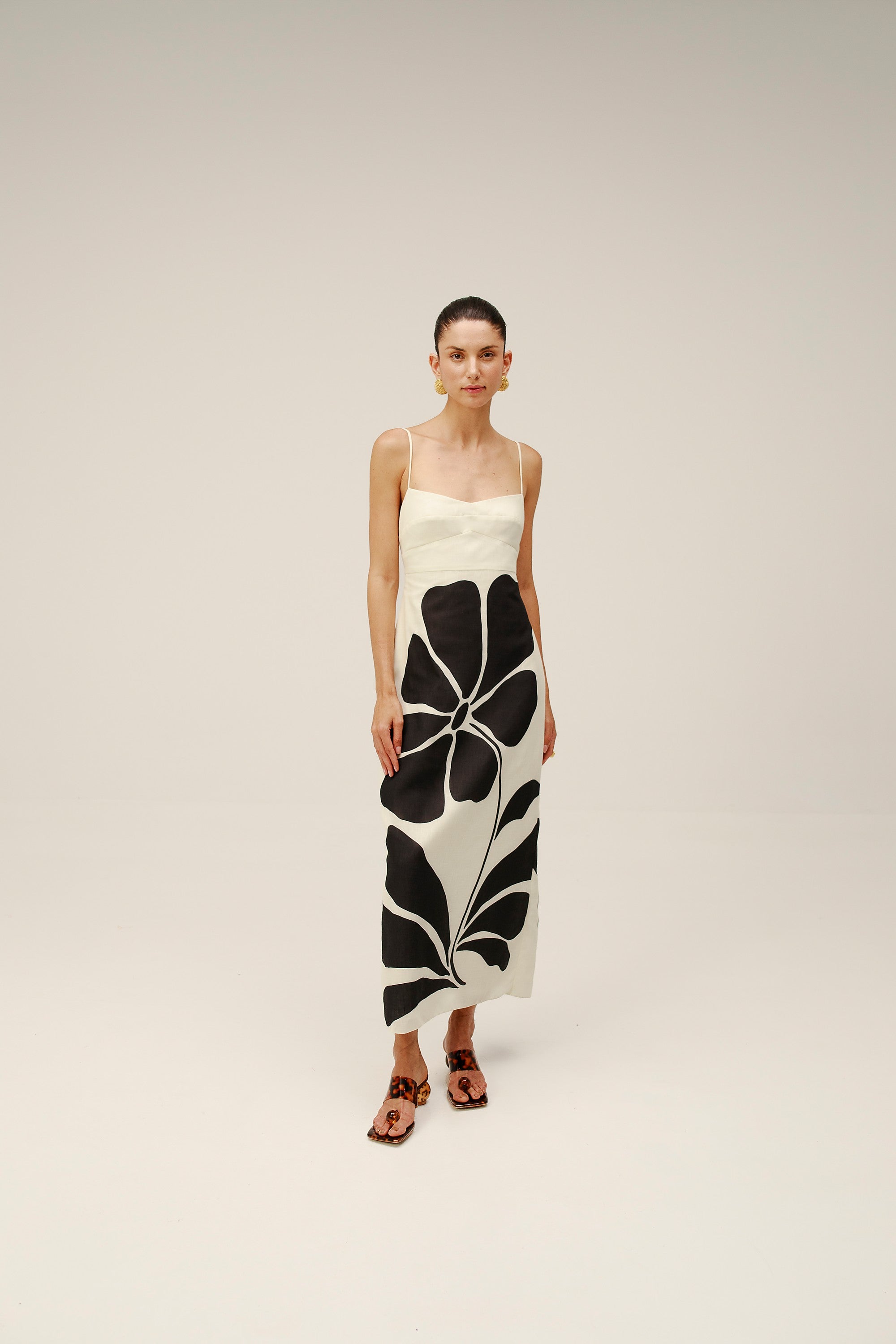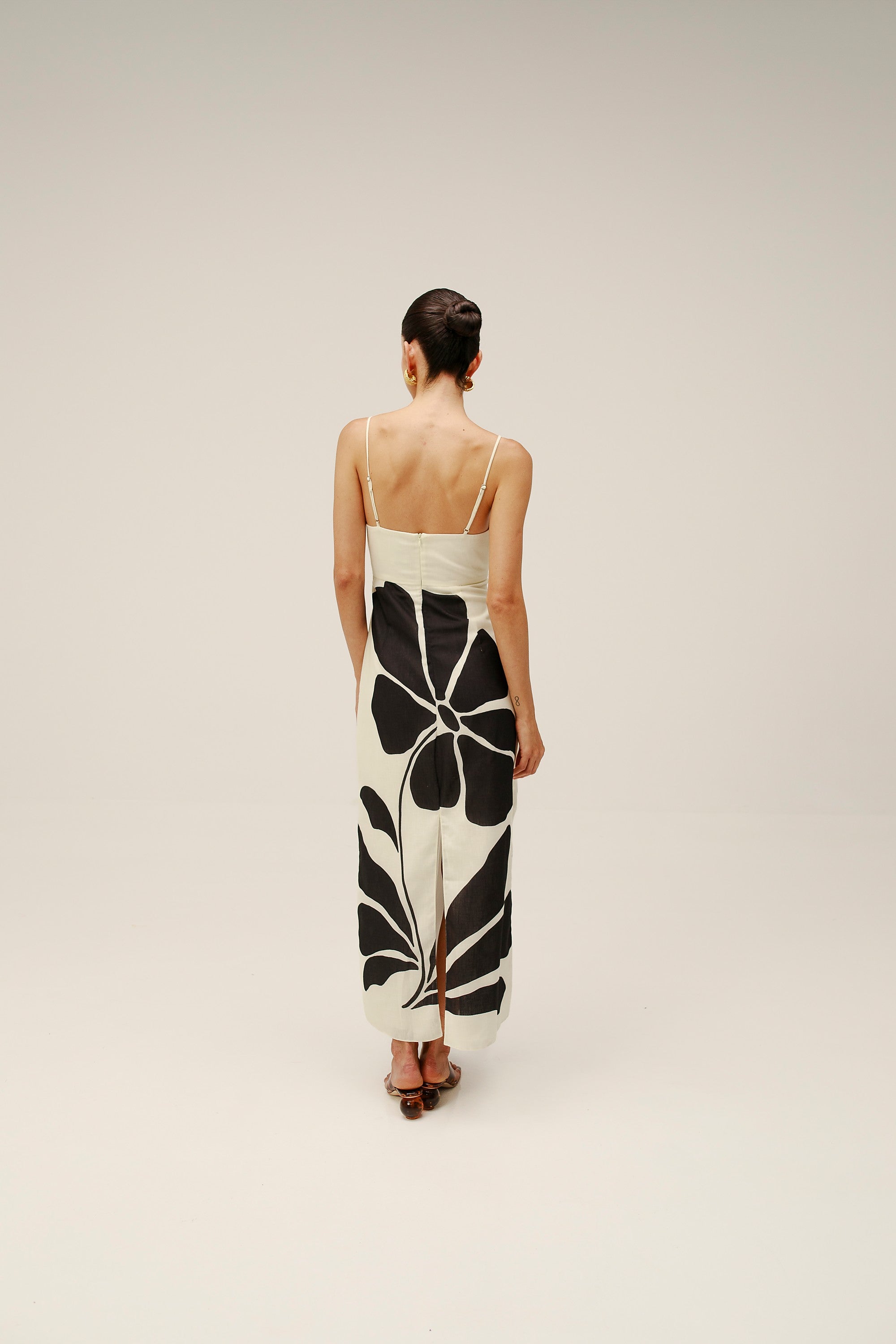 Vestido largo de escote entallado y falda relajada. Completamente forrado. Hecho de 100 % lino.