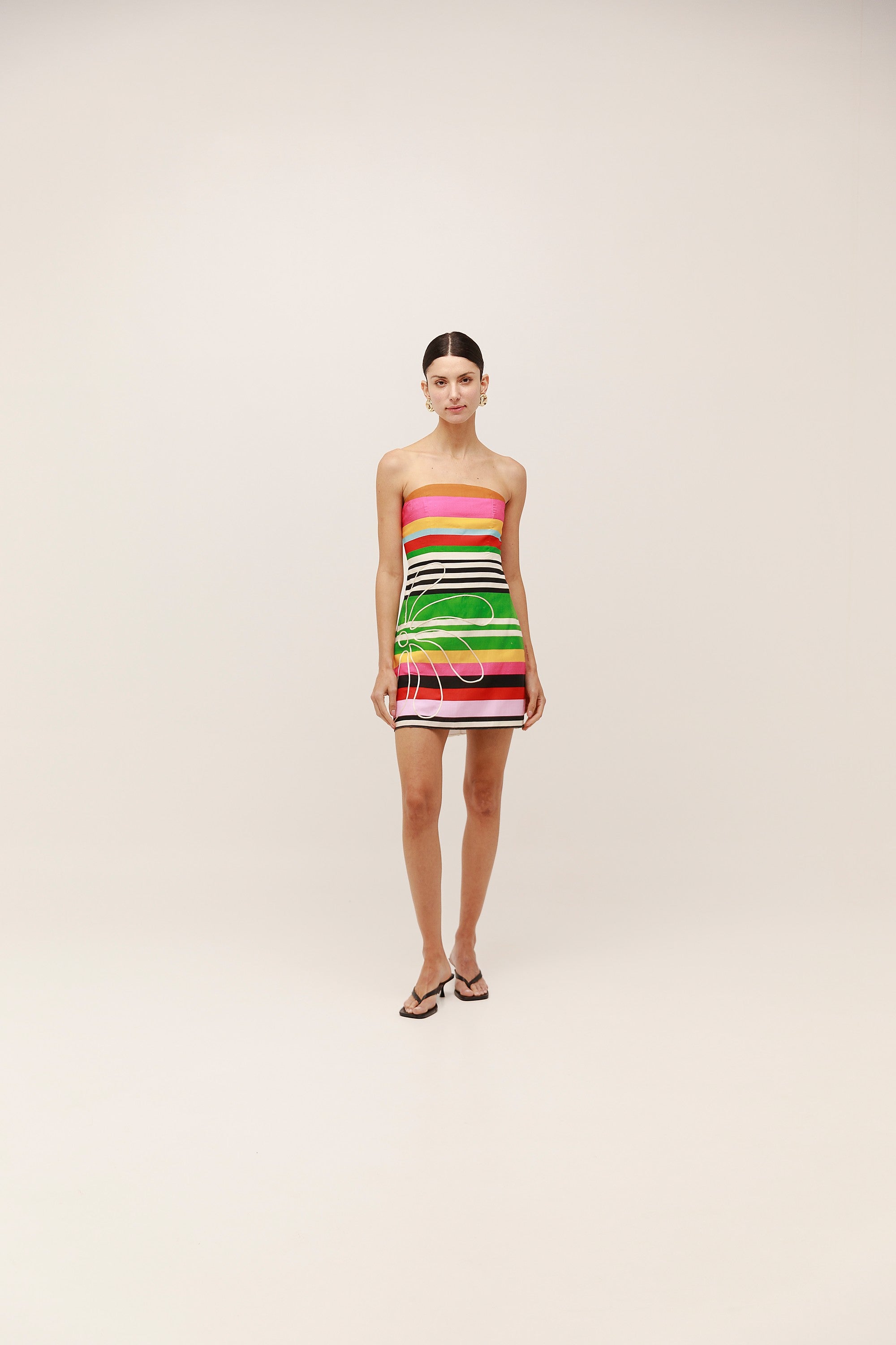 Vestido strapless mini ajustado. Completamente forrado. Hecho de 100 % Lino.