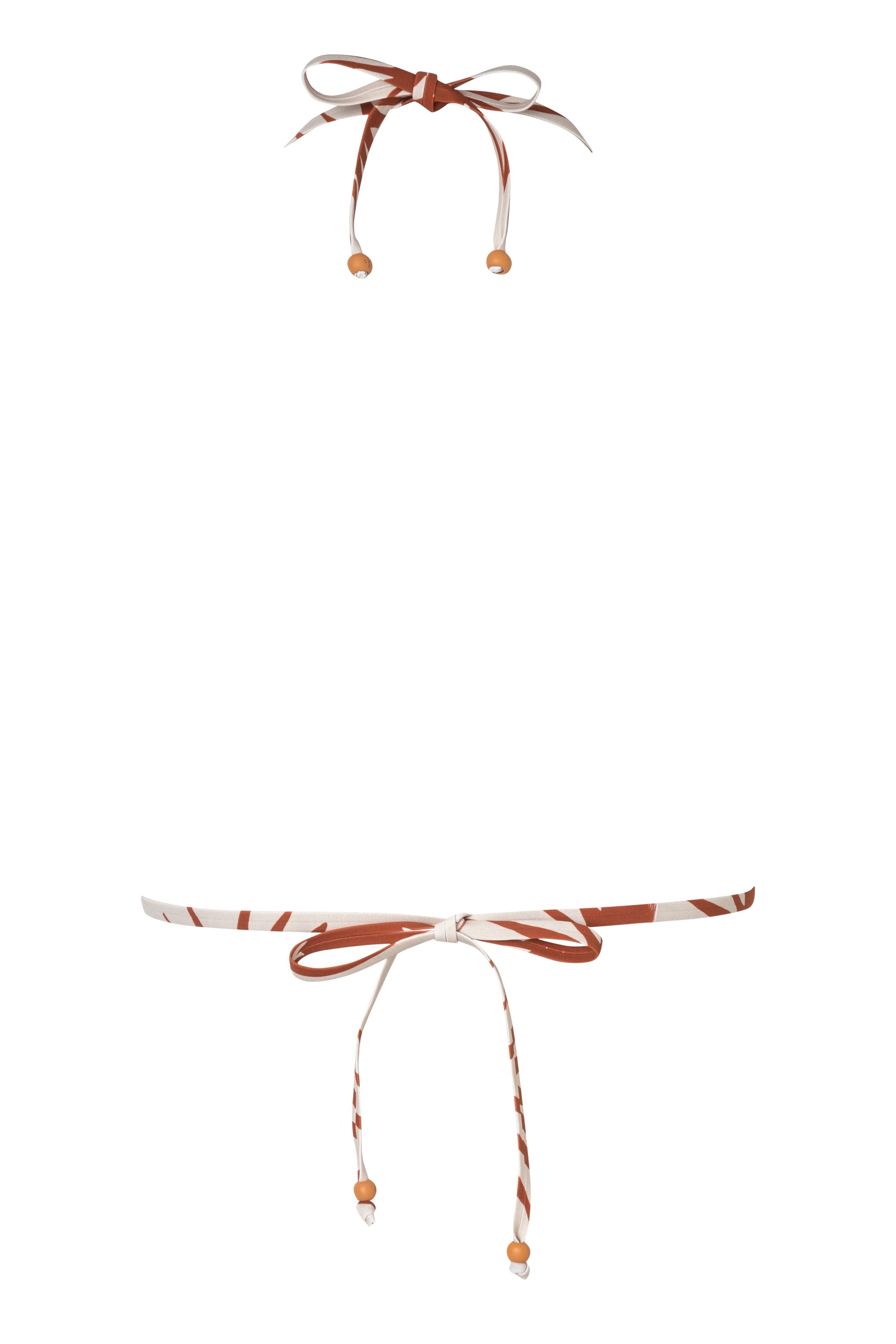 Top de bikini triangular con cuello estilo halter| totalmente forrado| con tiras ajustables en el cuello y la espalda. Hecho con poliamida reciclada| poliamida y elastano.