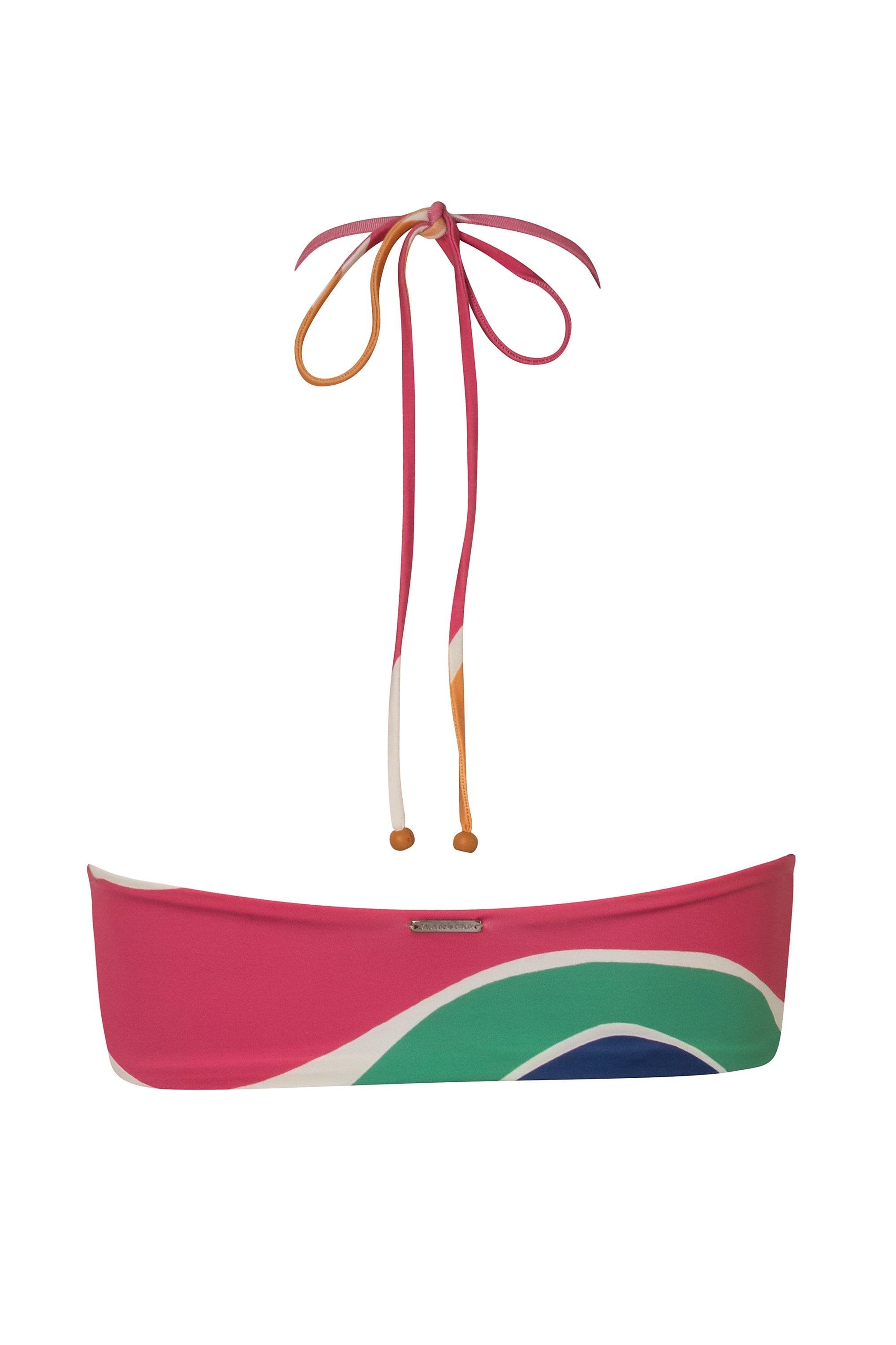 Top de bikini estilo halter| totalmente forrado| con tiras cruzadas y escote en forma de lágrima en parte delantera. Hecho con poliamida reciclada| poliamida y elastano.