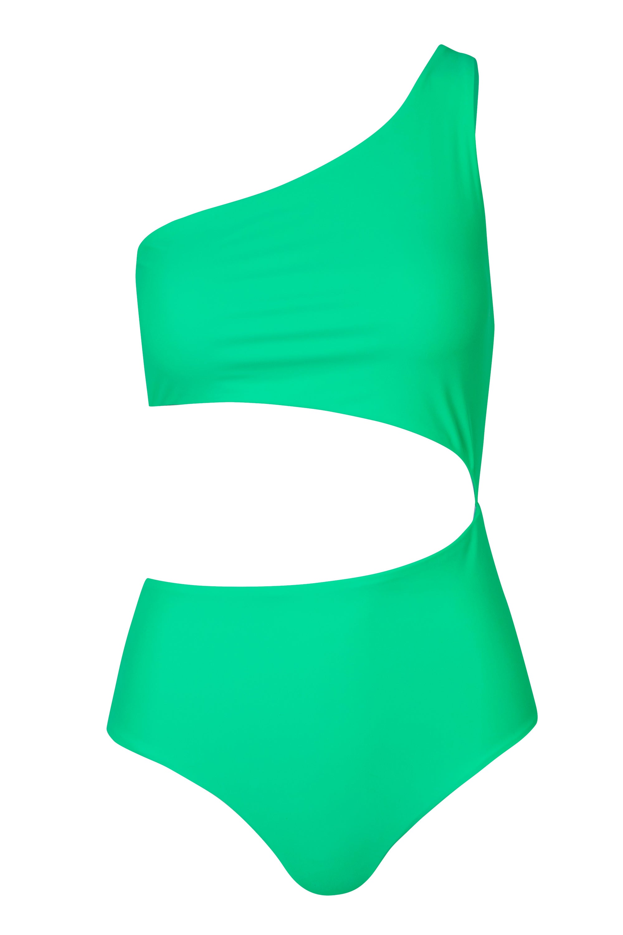 Enterizo asimétrico de un hombro con abertura lateral| totalmente forrado. Hecho con poliamida reciclada| poliamida y elastano.