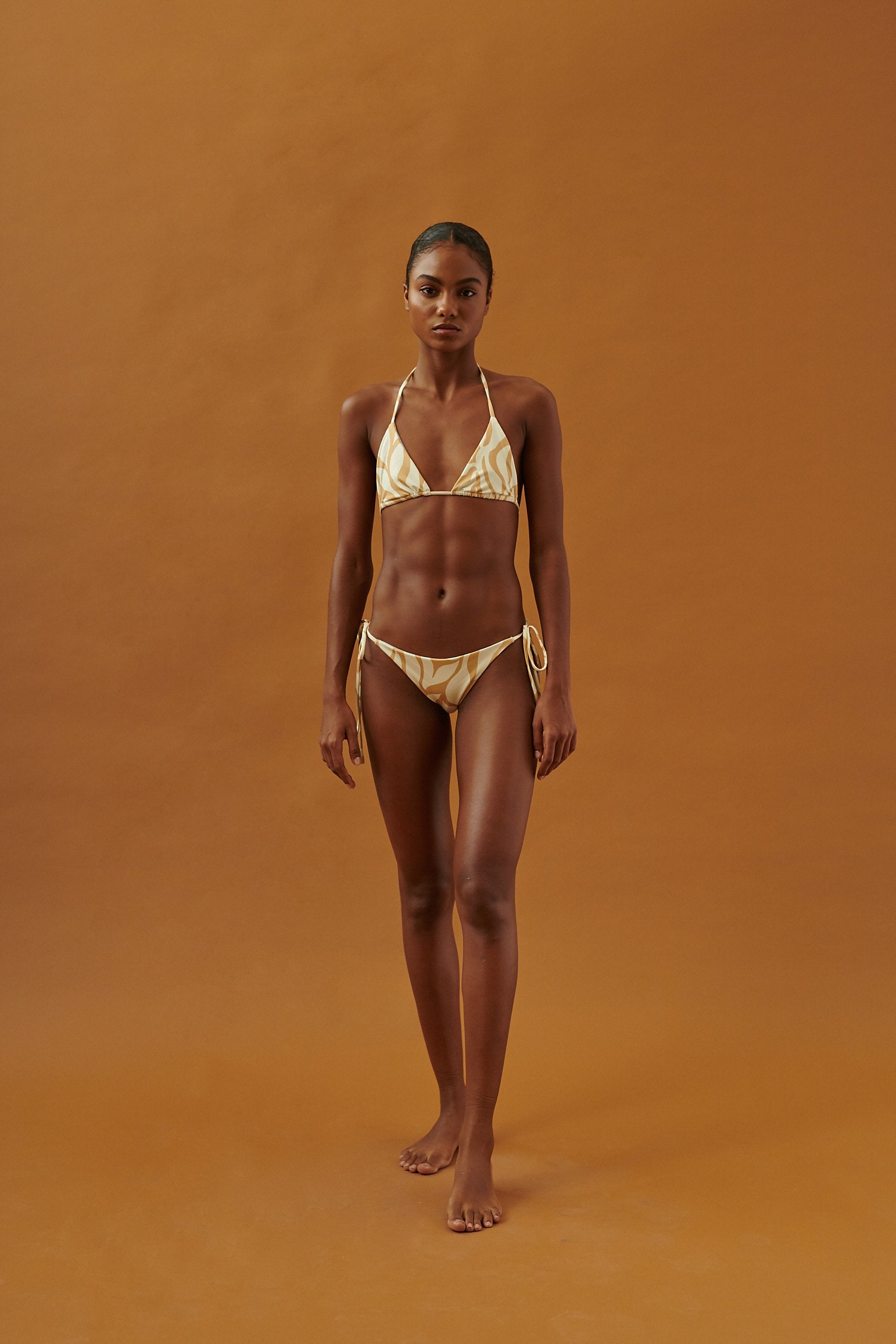 Bikini bottom de talle bajo| totalmente forrado| con tiras laterales ajustables. Hecho con poliamida reciclada| poliamida y elastano.