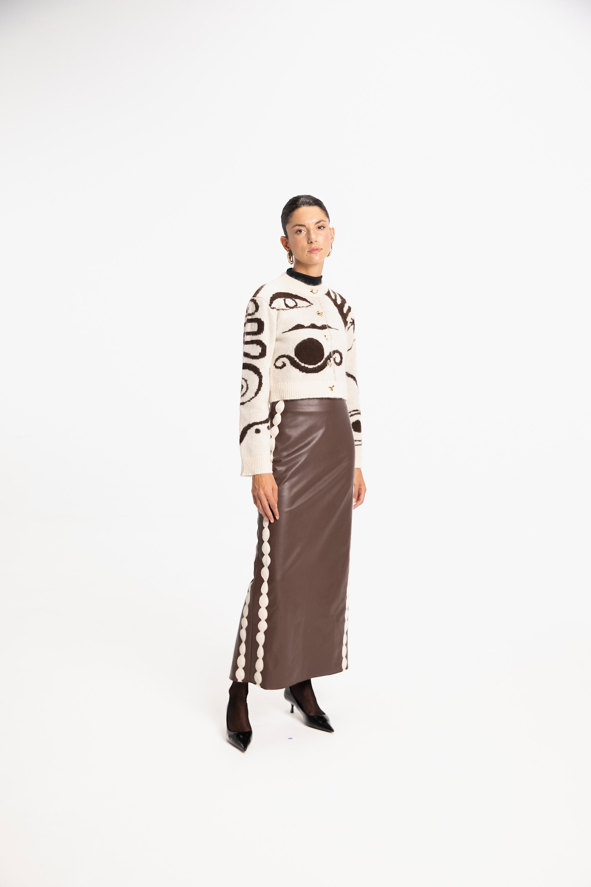 Falda larga tipo lápiz de talle alto con abertura en posterior y cierre invisible. Hecho de Revestimiento: 100% Poliuretano Base: 100% Viscosa.