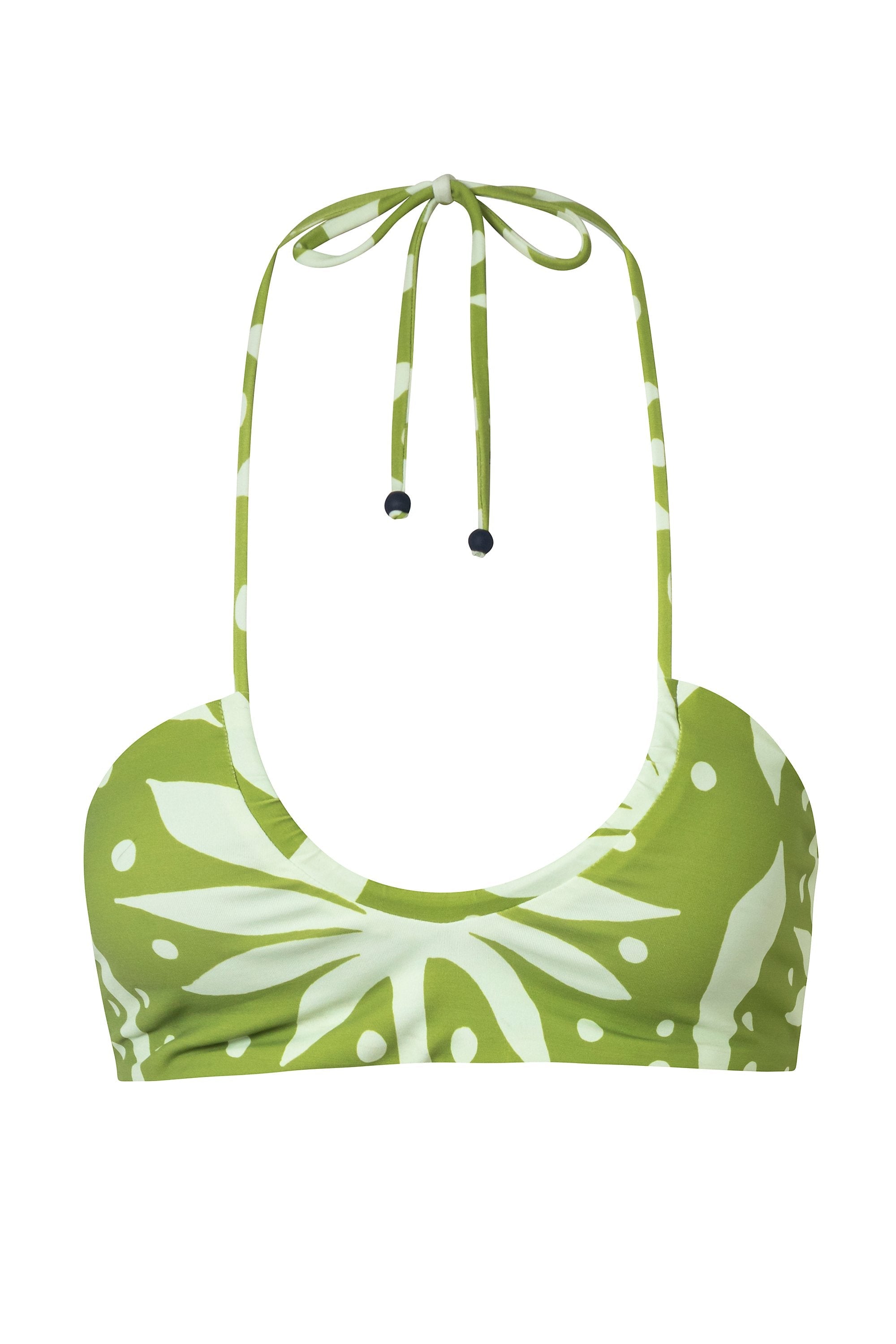 Top de bikini estilo halter totalmente forrado con escote redondo. Hecho con poliamida reciclada poliamida y elastano.