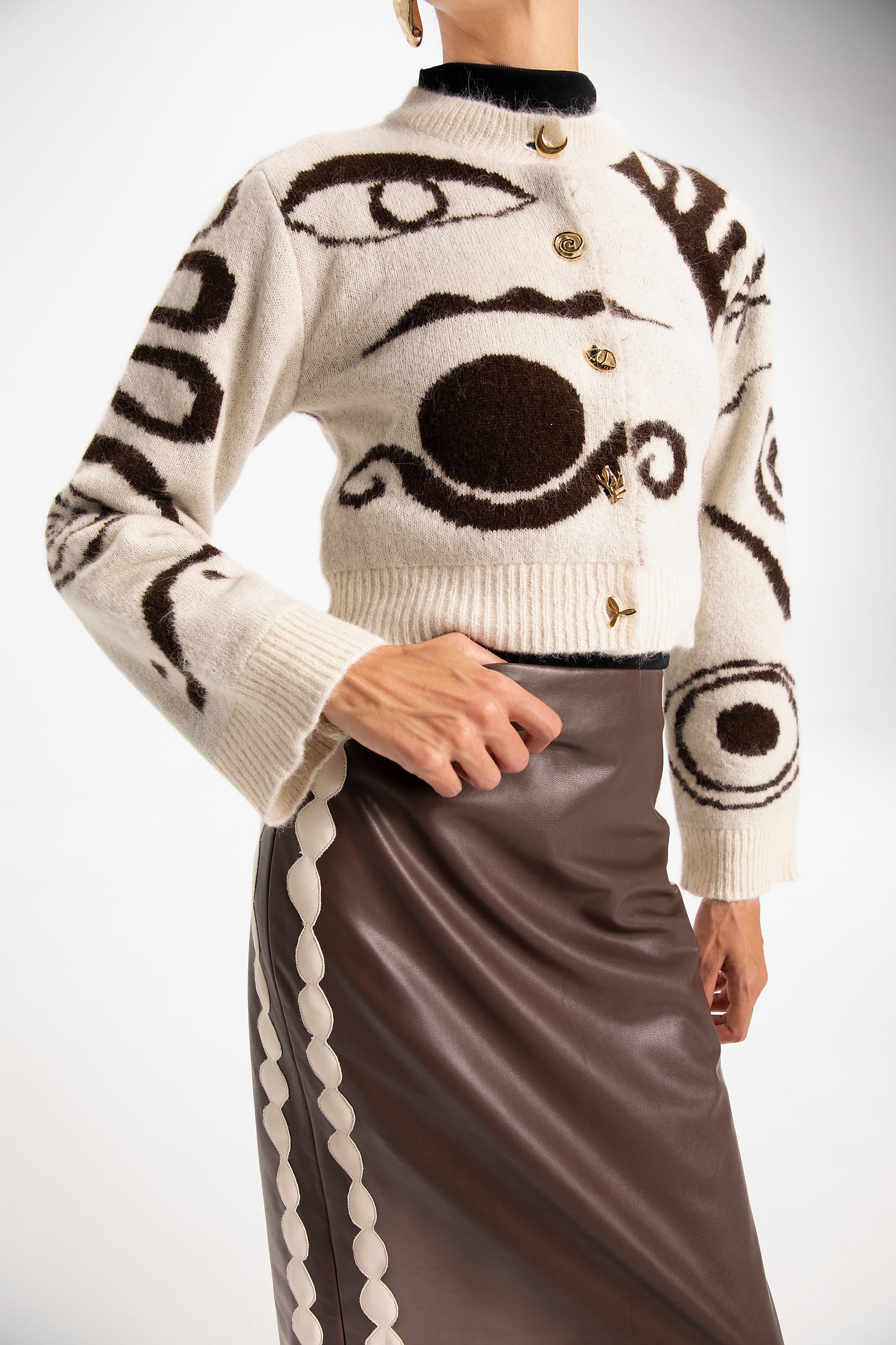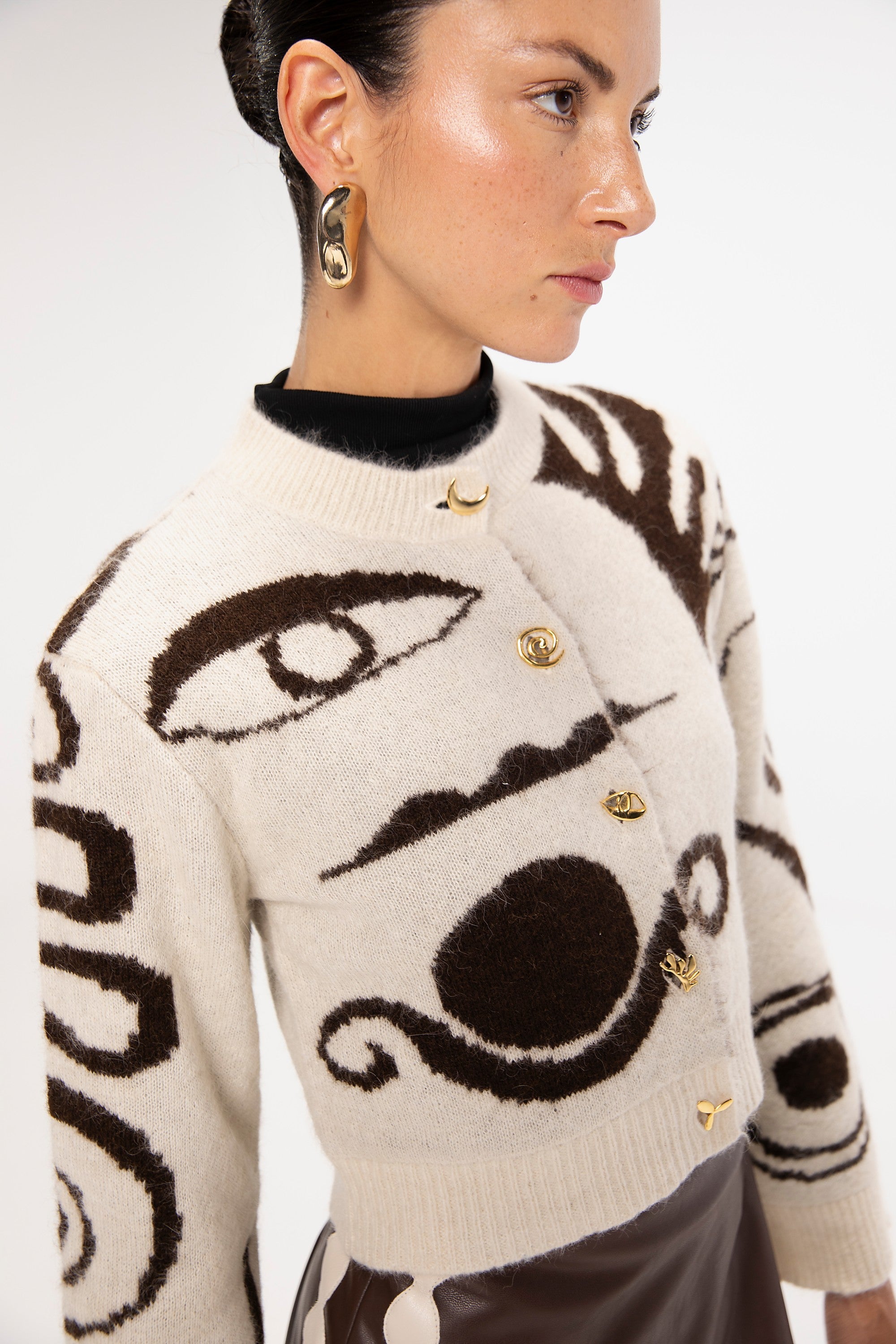 Cárdigan de manga larga con cuello redondo+ acabado acanalado y cierre delantero con botones. Hecho de 68% Alpaca+ 12% Nailon+ 10% Seda y 10% Mohair.