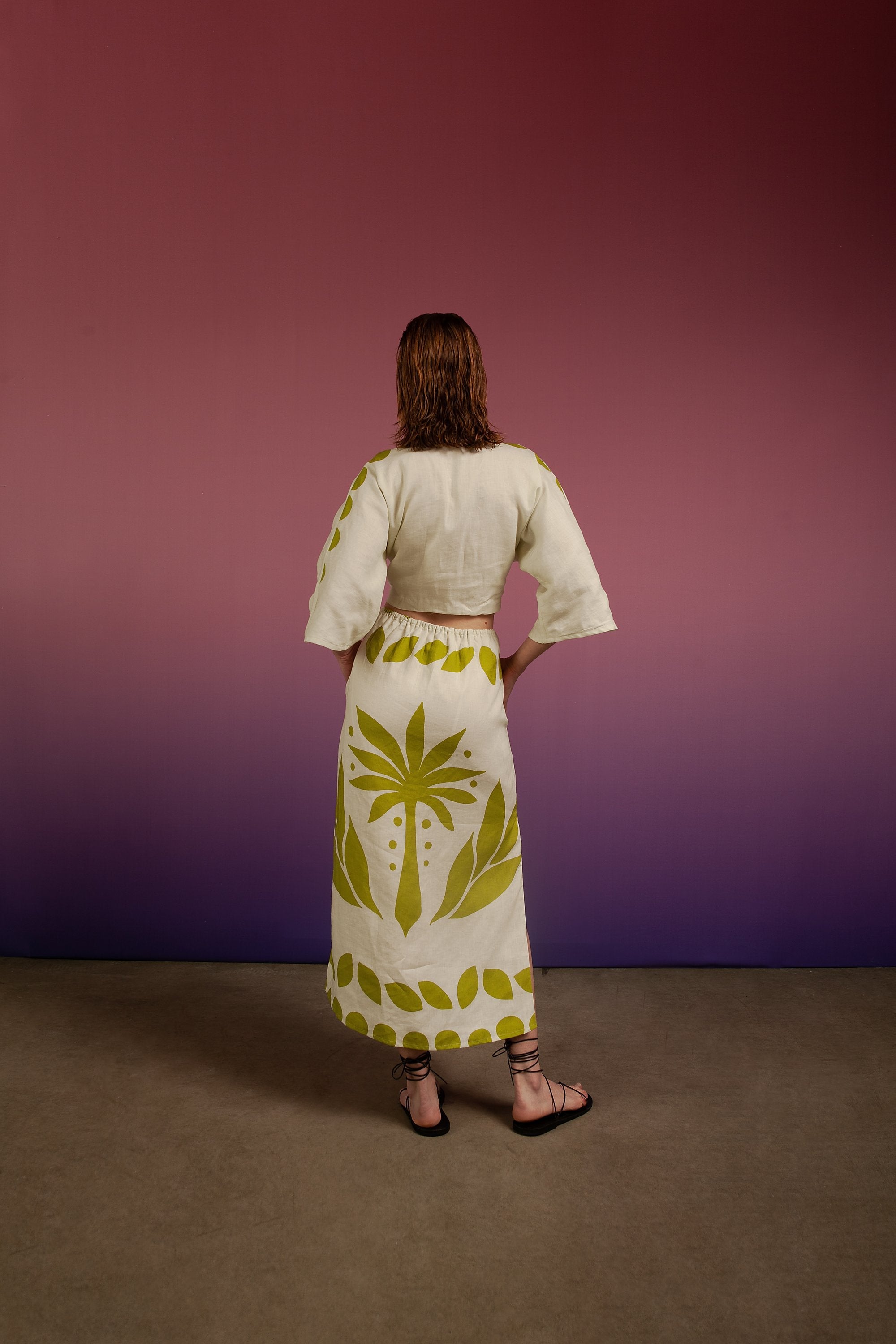 Vestido largo con escote en V pronunciado y aberturas laterales. Top forrado y mangas oversized. Hecho de 100% algodon.
