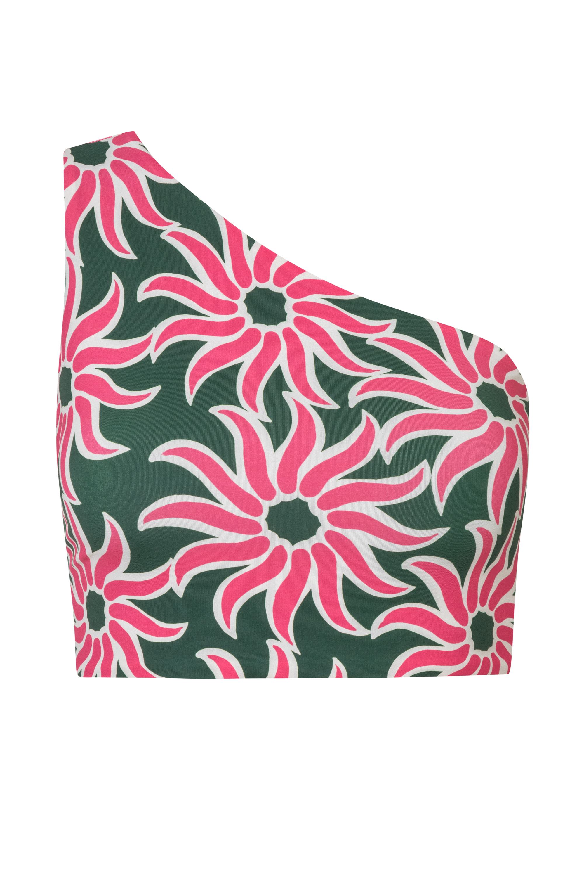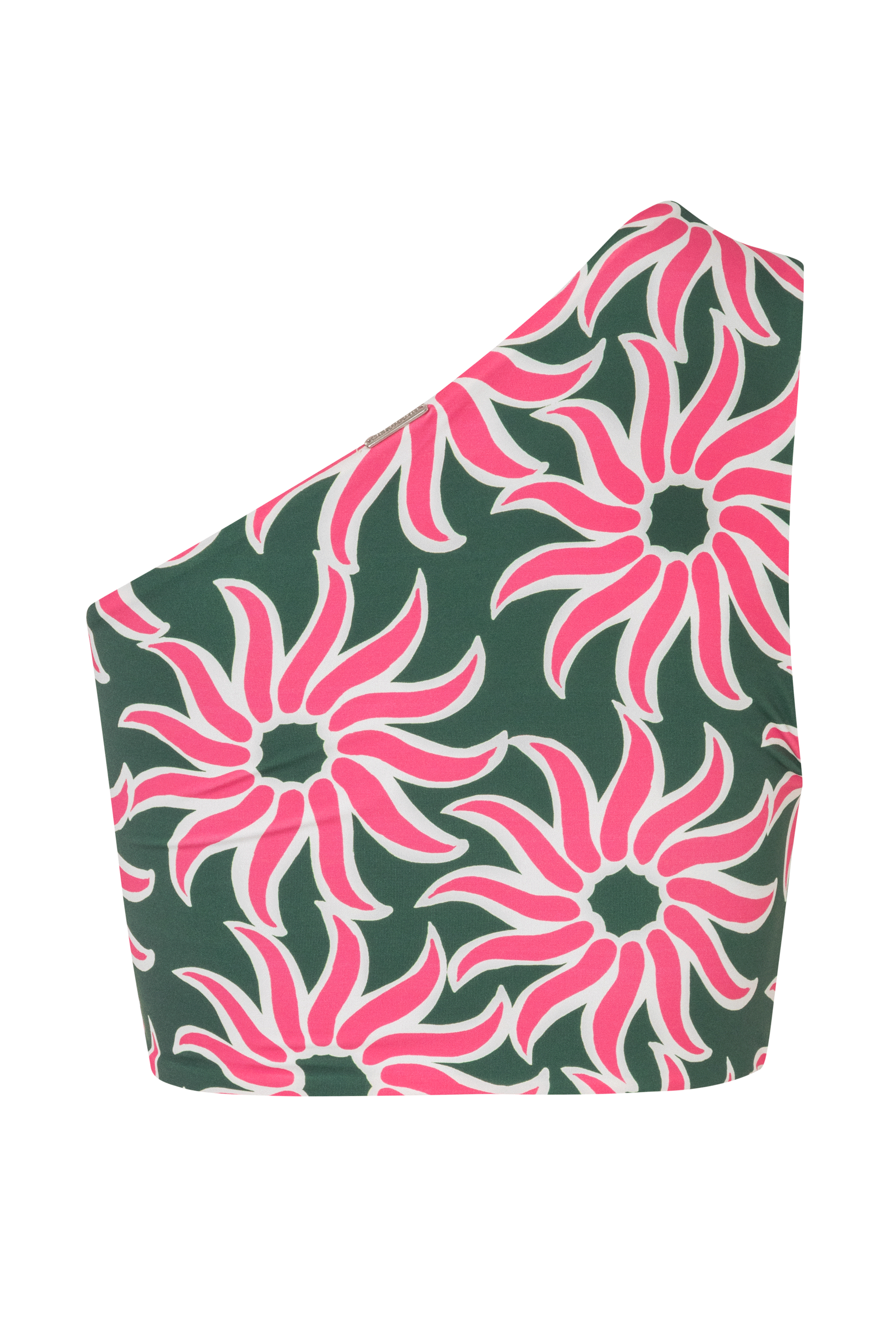 Top de bikini de un hombro totalmente forrado con tira ancha. Hecho con poliamida reciclada, poliamida y elastano.