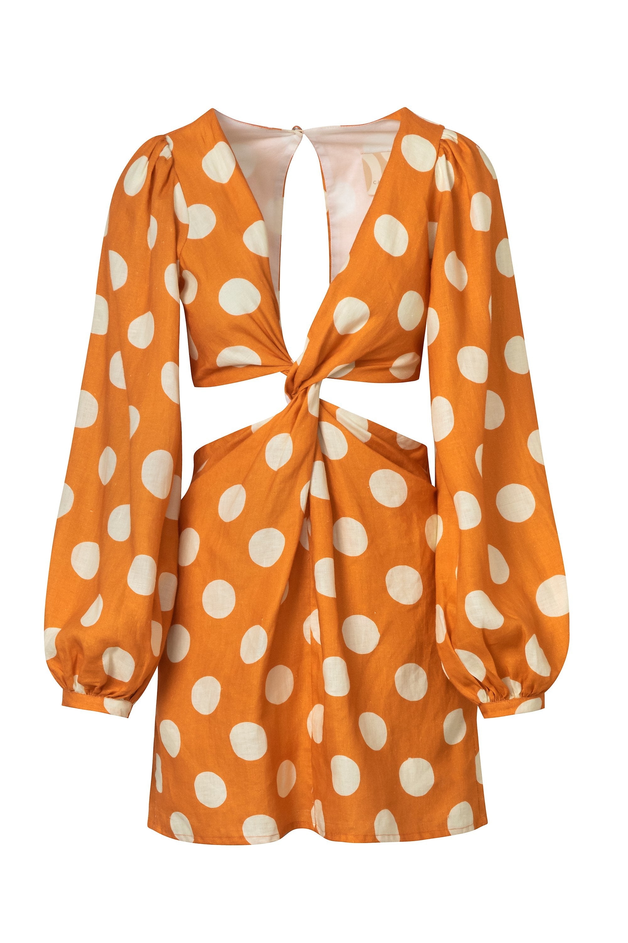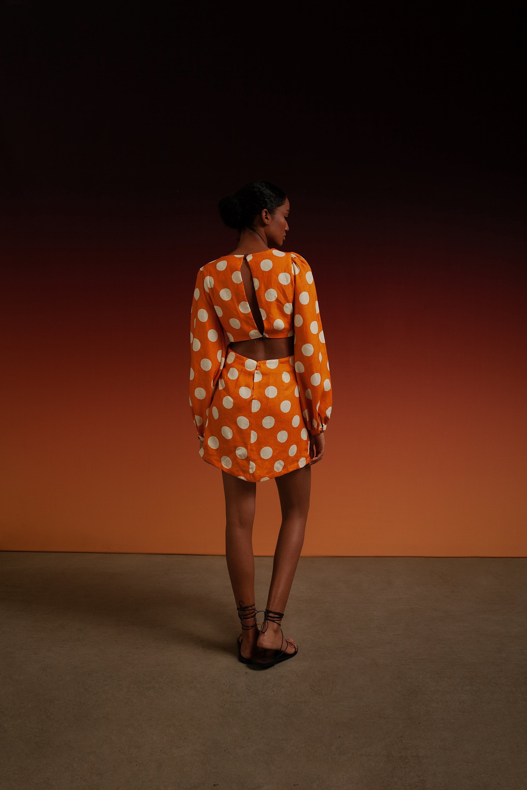 Vestido corto con escote en V pronunciado y aberturas laterales. Top forrado y mangas oversized. Hecho de 100% lino.